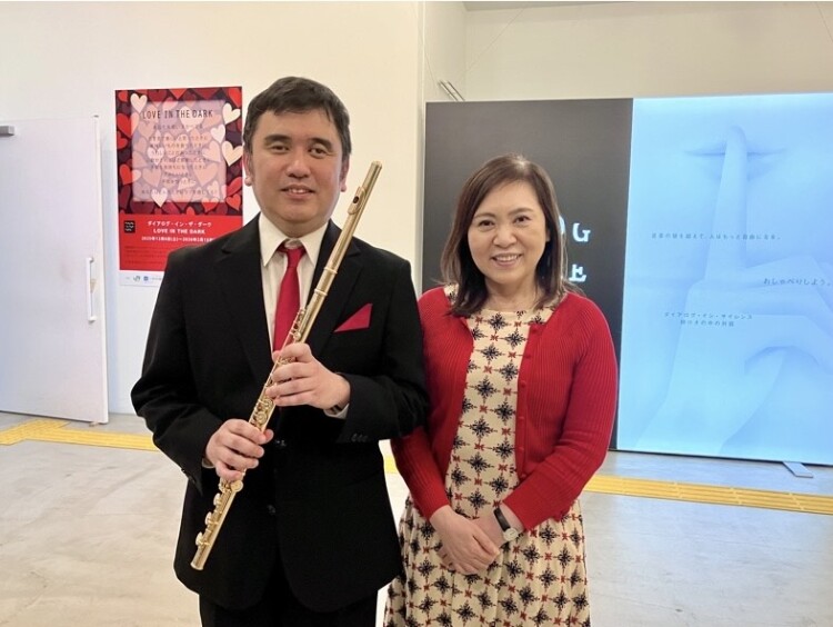 志村:本当ですね。なので、まだ本当にダイアログが始まったばっかりの頃から綱川さんには暗闇でフルートの演奏していただきながらとか、アテンドもしていただいていて、たくさんのお客様を魅了して、私もその中の一人でもあるんですけど。