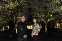 「今まで夜の照明っていうと、暗いからつまずいちゃったら困るので明るくしましょう。安全の為の灯りを作ることだったんですけど、もう1歩進んで、ここでは景色が夜になると昼間以上に素敵な景色が広がっていく事をやってみたいとっていう風に提案したんですね。それは光によってお庭の特徴だとか、例えば大学の時代からずっと残っている大きな木とか、それを照らし上げたり、それから高低差があるので壁みたいなものを出てくるんですけど、石積みの壁。そういった所に光を当てて景色を作っていくと、そういうようなことをやったんですね。これは初めてやる事だったので、少し心配だったんですけど、みんなで検証して実験をして確かめて、1つ1つそうやって作っていったという、非常に丁寧にできている団地ですね。灯りがポッと灯る事によって、そこに暮らす時間が見えてきたり、あるいは夜の豊かな時間を散歩しながら見る事によって心が穏やかになっていったり、そういった作用が光にはあるんだと思うんですよね。そういった良い時間を作ってくれるっていうのが照明の魅力だと思いますね。」