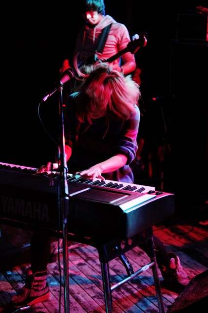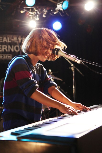 次に登場したのは、最後のインディーズアルバム「コンドウマニア4」が発売になり、来年にはメジャーデビューを控えている近藤夏子。「近藤夏子で〜す」と元気に登場。ニューアルバムからの「信号破壊」「リハーサル」を続いて披露。激しく体を動かしながら演奏するキーボードと、ハリのある歌声は超パワフル。変幻自在に変わる表情はときにかわいらしく、時に激しく、オーディエンスを圧倒しながらもどんどん引きつけていく力強いライブでした。