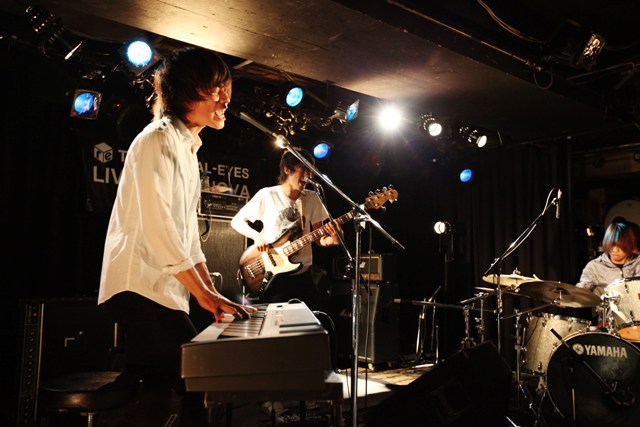 最初に登場したのは、この日が2ndダウンロードシングル「レイス」のリリース日となった、3ピースピアノロックバンド、WEAVER。登場とともに歓声が起こり、思いのままに楽しむオーディエンスを前に、ニューリリースの「レイス」を含む5曲を熱唱。際立つピアノを支えるドラムとベースのポップなアレンジに、若さあふれる元気なパフォーマンスで存在感を十二分に見せ付けたステージでした。