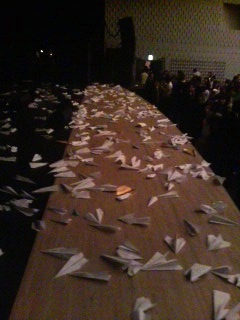 それを紙ヒコーキにして、ライヴ半ばで「せーの!」で