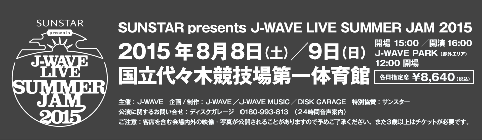 ★8月9日(日)出演「SUNSTAR presents J-WAVE LIVE SUMMER JAM 2015」@国立代々木競技場第一体育館