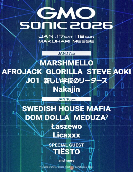 さらに、TIESTO、MARSHMELLO、STEVE AOKI、GLORILLA、JO1、新しい学校のリーダーズ、DOM DOLLA、and more!!