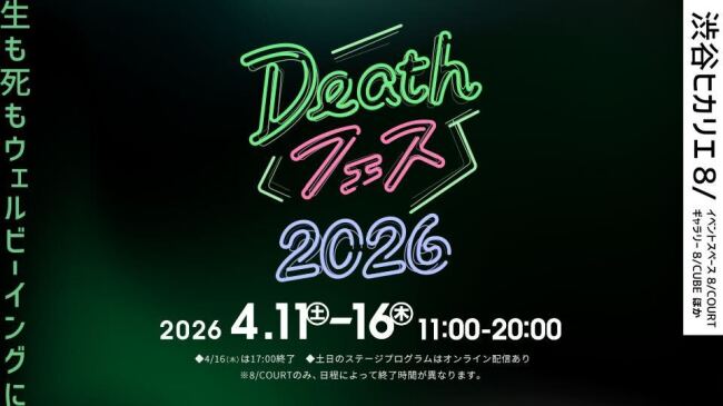「よい死の日」である4月14日を中心に、さまざまなテーマから死を捉え直すトークセッションや、入棺体験・AI遺影・僧侶ファッションショー・各界の有識者による公開討論など、死をテーマにした体験型プログラムが集結する6日間です。