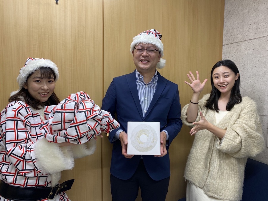 小林麗菜と、ユーハイムサンタが、リスナーさんの気持ちと、バウムクーヘンを