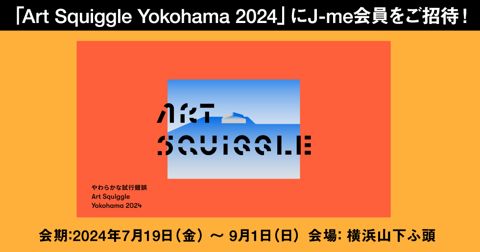 7月19日(金)から、横浜山下ふ頭で今年初開催の現代アートフェスティバル、「Art Squiggle Yokohama 2024(アートスクイグルヨコハマ 2024)」に、J-me会員または新規ご入会の方、10組20名様をご招待いたします!