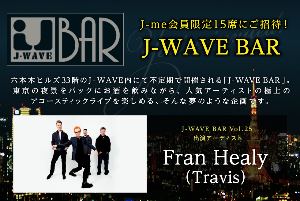 大人気企画「J-WAVE BAR」に、グラスゴー出身、UKロックを代表するバンド『Travis』から「フラン・ヒーリー」を迎えて開催決定!!