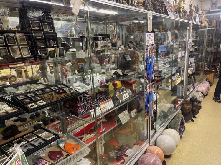 中には隕石はもちろん、水晶や、仏像、置物などが並べられ カオス状態!隕石は大きいものから小さいものまで様々で、総計3トン置かれているとか!