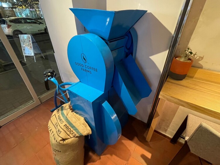 こちらのお店は、水も電気も燃料も使わず自転車でコーヒー豆を脱穀して、天日で自然乾燥させるサステナブルコーヒーを扱う会社「GOOD COFFEE FARMS」がコンセプトショップとしてオープンしたカフェ。