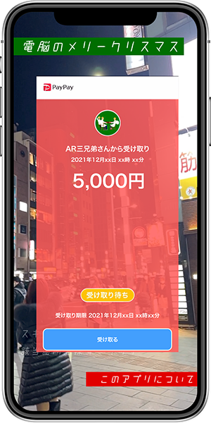 隠されたプレゼントを見つけるとAR三兄弟からPayPay残高5,000円分が贈呈されます。