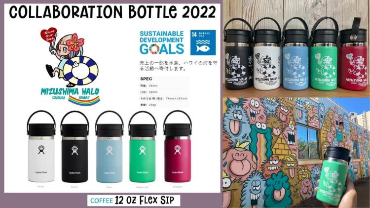 そしてハワイで人気のブランド「ハイドロフラスク」とコラボレーションした水島デザインのマイボトルを制作し、