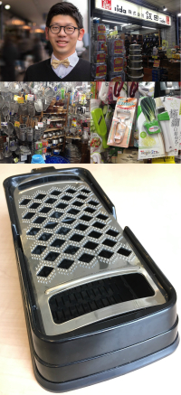 あと料理が大好きだという方に、僕が大好きな料理道具を1個ご紹介したいと思います。下ろし金って持ってますかね?下ろし金ってすごい実は日本の道具の中でもトップクラスで面白い道具で、5つの食感に分かれるんですよ。フワフワの食感、反対側にジャキジャキの食感。で真ん中にシャキシャキ、シャキフワ、フワシャキの計5個食感があるんですけど、フワフワのほど甘くなるんですね。でシャキシャキのほど辛みが増して辛くなる。その中でフワフワで甘い大根おろしが表現できる究極のフワフワ下ろし金というのがありまして、新潟の燕三条にある会社、アーネストという会社で作られている楽楽オロシてみま専科という下ろし金があります。これが滅茶苦茶なフワフワ感を出すんですよ。なので是非これをオススメしたいですね!」