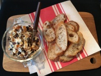 ドライフルーツをソーテルヌというワインに少しつけてから刻んで、サワークリームとあえたアミューズブッシュ、「ドライフルーツのサワークリームあえ」