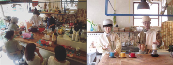 店長(写真上右の右)の灰谷歩さんが自らDIYで作た空間。