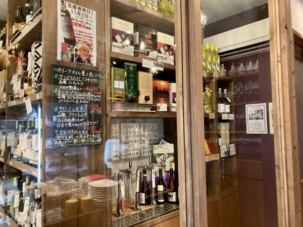 お店ではチーズや生ハム、自家製のイタリアンのお惣菜のほか、ワインとオリーブオイルの量り売りも! イタリアの新鮮な味を堪能できます。