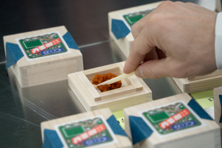 その土地土地の”うに”の良さを見極め、マッチした塩気をまとわせ、熟成期間をおき、それらをブレンドした”うに”が天たつの汐うにとして出荷されていきます。