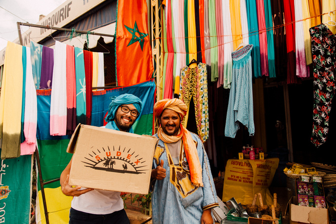 世界各地の街角にある、使われていない段ボールを使って、かわいくてカッコいい財布や小物入れを作る島津冬樹さん。