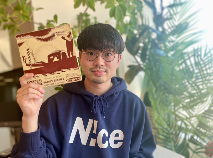 「シドニー・ベシェという、アーリージャズと呼ばれた年代ですね。1952年の曲なので、僕はその現存してるものを見たことがないですけども、想定すると多分、今日はレコード(塩化ビニール)ですけど、多分オリジナルがこの曲にあるんだとするのであればSSP盤で出てるはずで。だからこれも古いレコードではあるんですけど、年代的にはオリジナルじゃないでしょうね。 レコードよりもっと古いやつ、蓄音機で聞くやつですね、はい。なんで結構古い。この曲はウディ・アレンの「ミッドナイト・イン・パリ」という映画がありまして、それのほんとテーマ曲といえるような曲。この映画も、サントラも素晴らしいので、全部好きなんですけど、この1曲にやられて。いろんなバージョンがどうやらあるらしいっていうことを知ってですね、もうこの曲が入ってるレコード10枚ぐらい買ってるんですが、バージョンが違うのが1個しかなかったんでね、全部一緒でした(笑)」