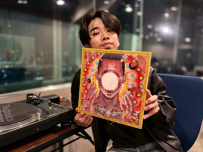 「僕が最初に自分で買ったレコードですね。FLYING LOTUSの『You're Dead!』というアルバムなんですけれども、この曲は僕が曲名とか、そういう云々をね、自分で全部能動的に覚えている影響を受けた一枚。最近、何が欲しいかなってなった時に、たまたま店頭にあったっていうのはもちろんなんですけれども、これは絶対に欲しいなという、形として持っておきたいなって思っていた一枚ですね。なので一番最初に買ったレコードかなと思います。内容もサンダーキャットというベーシストがベースを弾いていたり、ケンドリック・ラマーが歌ってたり、僕的にもかなりこの自分の中でのエポックメイキングな人たちが参加している楽曲ということで、一曲目はまずこのレコードなんじゃないかということで、このアルバムをチョイスしました。」
