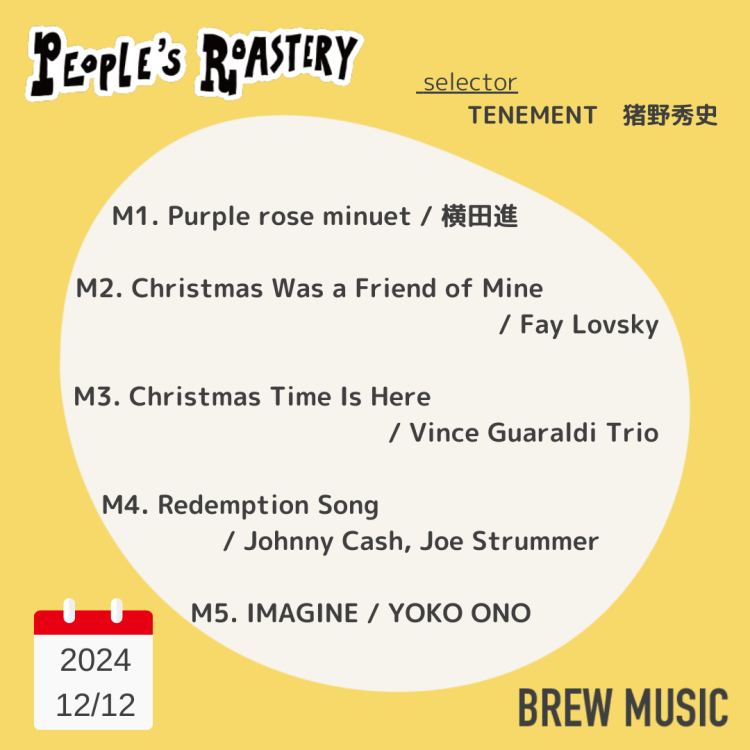 「TENEMENT」オーナーで音楽家、猪野秀史さんの選曲でお届け。