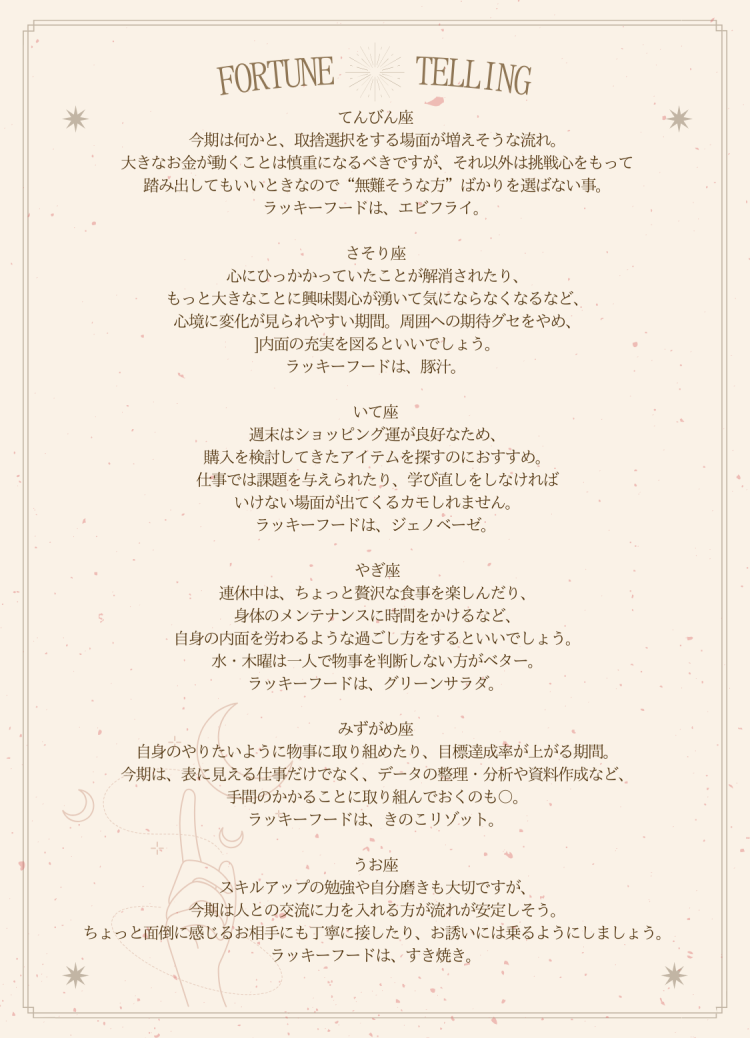 金曜の夕方は1週間の終わりではなく、自分を探す旅に出る、はじまりの時間。 好奇心のおもむくまま、<すべき>より<したい>気持ちを大切に。 それぞれのスタートラインに立って行く。