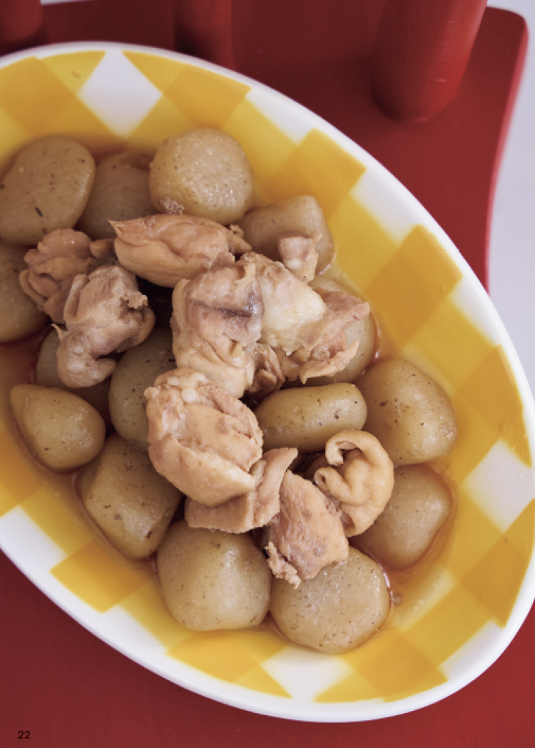 こんにゃくがひたるほどの水(分量外)、A、切った鶏もも肉を加え、