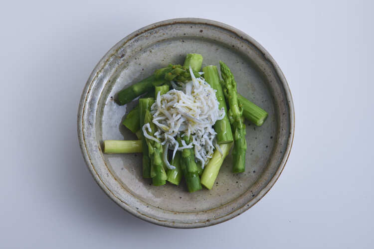 料理研究家の上田淳子さんのキッチンにリモート接続!上手な塩づかいで旬の野菜を最大限に美味しく!「アスパラガスの塩茹で オリーブオイルがけ しらすのせ」のレシピを教えていただきます。