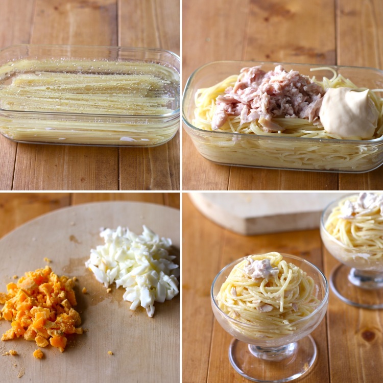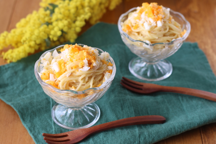 教えていただいたのは、「レンジで驚きの美味しさ ミモザ風スパゲティサラダ」です。