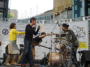 心地よい風の吹く中で聞くクラムボンの曲は最高♪ お客さんも大満足で拍手喝采☆ |