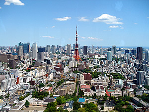 なにかが飛び交っている (?) 大都会・東京 絵に描いたような、いい天気ですよね〜♪ |