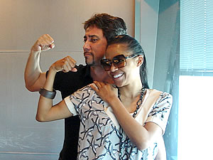 クリスさん vs エイメリー 力こぶ対決!? エイメリー意外に力強い腕!細いのに・・・ |