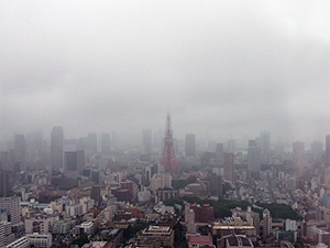先日までの猛暑から一転!雨が降る肌寒い東京です 東京タワーのてっぺんが雲の中に・・・ |