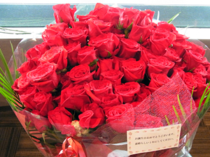 100本の真っ赤なバラがどーーん!!…凄い迫力です ☆クリスさんお誕生日おめでとうございます☆ |