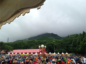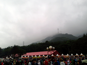 | 昨日までは晴れでしたが、会場は雨がポツポツ・・・これでこそフジロック!? |