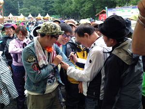 フジロッカーから大人気の大将!サインしてます |