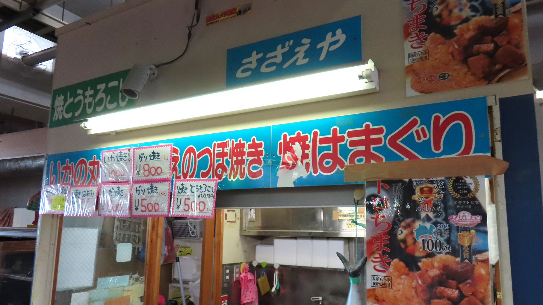 うらりマルシェ1階にある「さかな館」には、12店舗が並びます。今回立ち寄ったのが、浜焼きが楽しめる人気店「さざえや」さん。