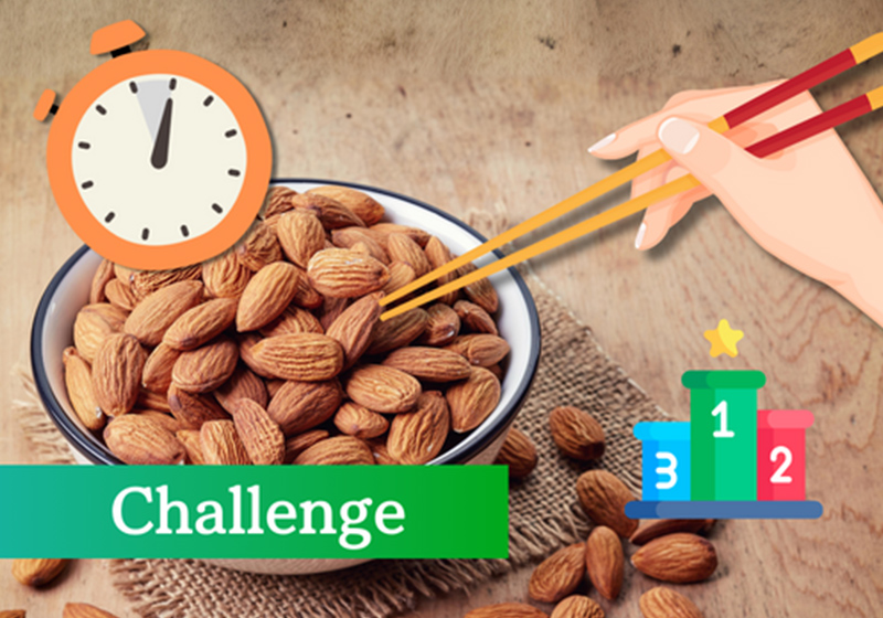 意外に難しい⁉アーモンドの箸つかみにチャレンジ!
