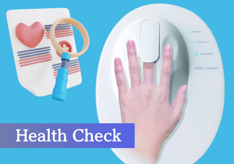 指先に専用機器に差し込むだけの簡易測定でカラダの糖化度をチェック!