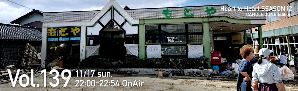 今回は番組スタッフがJUNEさん達の輪島市町野町と能登町での活動に密着。被災された方、復興支援する方、JUNEさんの活動に賛同して現地を訪れたミュージシャンなど様々な方が抱く、それぞれの復興への想いをお届します。