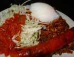 キャベツを添えています。うまさの秘訣はサイドのチキンorチョリソー!