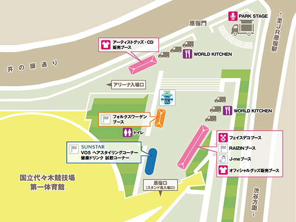 8/8、9共に会場・原宿口前のスペースに、野外エリア「J-WAVE PARK」が出現します。