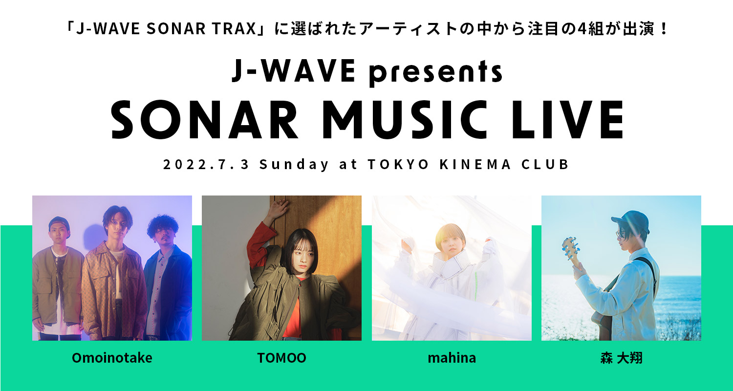 J-WAVE(81.3FM)「SONAR MUSIC」(月-木 22:00~24:00)がプロデュースするライブ・イベント開催。